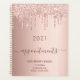 Un or rose et rose vif faux métallique d'apparence arrière - plan avec gouttes d'or rose, la peinture goutte à goutte. Modèle pendant un an. Personnalisez et ajoutez un titre, un nom d'entreprise, des coordonnées sur le devant. Le titre du livre est écrit en or rose foncé avec un grand script de style à la main moderne. Pour que les swashes ne suppriment que le nom de l'échantillon, laissez les espaces ou émoticônes devant et après le nom. Un planificateur de rendez-vous pour les maquilleurs, les designers de cheveux, les salons de coiffure et de beauté.