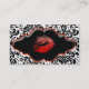 Carte de visite spa de salon de maquillage avec lèvres et joli arrière - plan à damas fleuri.