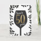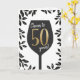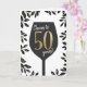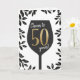 Elégant salut d'anniversaire noir blanc et doré, Cheers à 50 ans! Félicitez quelqu'un avec cette carte de verre de vin moderne avec des feuilles.