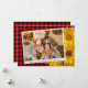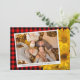 Unique, classe, tendance, jolie et décorative carte de vacances Thanksgiving. Avec place pour customiser ou personnaliser avec une photo et les noms (ou nom de famille) de votre choix. Avec les fleurs de mignonette classique de la chute jaune des mamans sur la ferme rustique inspiré tartan plaid design arrière - plan motif. Et une saison personnalisable saluant poème sur le dos de la carte.