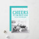 Dotted Cheers to the New Year Photo Flat Card avec un amusant arrière - plan de pois en bleu turquoise et blanc. Ajoutez une photo et un accueil personnalisé pour customiser. Photographie © Storytree Studios, Stanford, CA