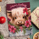 Envoyez des voeux de vacances chaleureux avec cette carte de charme avec une jolie vache Highland ornée d'arcs festifs et de verdure de vacances. Le message "Bonnes Fêtes" ajoute une touche joyeuse, parfaite pour partager des réjouissances festives avec des amis et des familles qui aiment les modèles de vacances uniques et adorables.