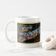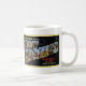Salutations tasse vintage de carte postale de grand-lettre de Hot Springs, Arkansas. La carte postale paraît des deux côtés de la tasse.
