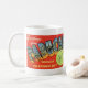 Salutations de Paducah, Kentucky, "tasse vintage de carte postale de grand-lettre de la ville atomique". La carte postale paraît des deux côtés de la tasse.