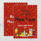 Bonjour à la NOUVELLE ANNÉE Salutations Red Custom Card. L'illustration utilise un arrière - plan rouge cool avec des accents cocktails/boissons/dîners devant, et un arrière - plan similaire à l'envers. Vous pouvez modifier les Noms en cliquant sur le bouton Personnaliser. Parfait pour le Nouvel An / Graduation / Retraite / Toute occasion.