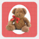 Idéal pour sceller vos invitations à la douche bébé ou un cadeau, cet autocollant carré a une image de bon vieux Sam, un ours en peluche escarpé avec un arc rouge autour du cou qui s'assoit dans un ovale blanc avec une bordure rouge sur un arrière - plan de pois blancs sur rouge. Voir collant vinyle taillé sur mesure, confetti, sac de faveur, ballotin, étiquette de faveur, sacs cadeaux, étiquette et papier d'emballage. Voir l'ensemble de la collection Kids’ Corner Sticker dans les INVITATIONS | Section Stickers & Étiquettes.