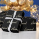 Très beau papier cadeau personnalisé élégant avec lettrage en blanc doré sur fond noir pour Samuel.