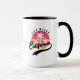 Mug San Diego avec un design qui dispose d'un coucher de soleil Retro. Ce design a également la Californie dans une police manuscrite avec un glyphe de queue d'escroc pour ce look Retro élégant. Cette tasse est faite pour vous si vous êtes de San Diego ou pour obtenir un cadeau ou un souvenir.