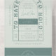 Cette conception de faire-part de mariage présente une typographie voûtée dans une police d'inspiration vintage funky. La police a une atmosphère ludique et rétro, ajoutant une touche unique à l'invitation. La palette de couleurs pour le design est une palette de couleurs terre sauge vert et menthe, créant une atmosphère cool et sophistiquée. La combinaison de la typographie voûtée et de la police vintage donne à l'invitation un look élégant et unique, tandis que la palette sage et vert clair ajoute une ambiance moody. Dans l'ensemble, ce design faire-part de mariage est parfait pour les couples qui veulent ajouter une touche de personnalité et de créativité à leur grand jour.