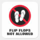 Les sandales de plage ne sont pas autorisées autocollant pour les magasins. Signalisation de chaussures interdites pour magasin, magasin, affaires, bureau, club, restaurant, centre sportif, piscine, sauna, spa, école, banque, fête etc.. Cercle rouge avec bande blanche symbole interdit. Ajoutez votre propre code vestimentaire texte ou icône en option. Aussi utile pour d'autres zones où les pantoufles ouvertes ou les tongs ne sont pas autorisés.