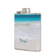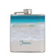 Flacon de boisson sur le thème de la plage, avec une photo d'une plage de sable blanc et d'eau bleu marine. Personnalisez le texte bleu pour vous-même ou comme une excellente idée cadeau pour vos demoiselles d'honneur et groomsmen.