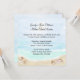 Le faire-part de mariage à thème élégant de la plage. Joli tableau d'une scène de plage de sable, avec coquillages, étoiles de poisson et dollars de sable au fond de l'invitation, et un arrière - plan coloré bleu et aqua, sur le reste de l'invitation. Le texte en noir est entièrement personnalisable pour personnaliser votre journée spéciale. Idéal pour les mariages de destination balnéaire.