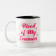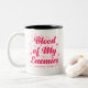 Blood of My Enemies Funny Mug is La phrase est présentée dans une couleur rouge riche et profonde qui rappelle un champ de bataille victorieux, créant un contraste saisissant sur le fond blanc immaculé de la tasse.