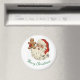 Cute, vintage picture of Santa holding a gingerbread man, is featured on this round Christmas magnet. With message, "Merry Christmas", this magnet would make a nice decoration for the holidays. Makes a good small gift or stocking stuffer too!