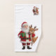A digital cartoon image shows Santa Claus standing next to Rudolph the Reindeer. Santa is wearing his traditional red suit with white trim, a black belt with a gold buckle, and black boots. He holds a green gift wrapped with a red ribbon. Rudolph is a light brown color and is leaning against Santa, with a red mitten on Santa's shoulder. The background is solid black, emphasizing the characters.