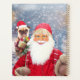 Un claus santa tenant un carlin mignon et des cadeaux de noël. Un cadeau de Noël parfait pour quelqu'un qui aime ou possède un carlin.