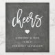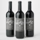 Personnalisez ces étiquettes de vin de style "Chalkboard gris charbon brossé" avec vos noms, date mariage et message variétal ou personnel. Le design comporte des "Cheers" en blanc écrit à la main en lettres de style avec une petite illustration cardiaque.