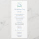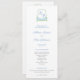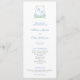Ce programme de mariage classique présente une crête botanique d'aquarelle intemporelle en vert sève et bleu moyen.