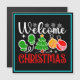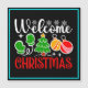 Conception joyeuse de Noël de bienvenue avec un arbre festif, des ornements, des mitaines et des flocons de neige — parfait pour les cadeaux de vacances, la décoration et les vêtements saisonniers. (Designcode-23758).