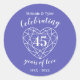 Sapphire célèbre 45 ans d'autocollants d'anniversaire d'amour. Simples contours carré effet ligne d'art graphique bleu et blanc 45th Sapphire Mariage Anniversaire autocollants ronds. Customisez avec vos propres détails de fête du quarante-cinquième anniversaire de mariage. Le 45e anniversaire est traditionnellement associé au saphir et le coeur symbolise l'amour. Graphiques et design par Sarah Trett pour www.mylittleedenweddings.com sur zazzle.