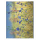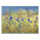 Chicorée bleue vif et fleurs de maïs fleurissent dans un champ doré d'herbe sous un ciel bleu pâle. L'arrière - plan blond et vert est également interrompu par le rose étincelant des fleurs d'herbe moelleuse.