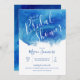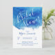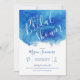 Invitations de douches nuptiales imprimées sur mesure et abordables avec un arrière - plan d'aquarelle bleu abstrait et une typographie de script manuscrite moderne. Personnalisez-le avec vos détails wedding showers. Utilisez les outils de conception pour modifier les polices de texte et les couleurs ou ajouter du texte et des photos supplémentaires pour créer un design unique d'un genre. Un design d'invitation chic et ludique, parfait pour un mariage sur le thème de la plage !