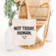A simple yet impactful design featuring the phrase “Not Today, Human.” in bold type, accompanied by a small stylized emoji or a blasé expression. Perfect for fans of dry humor and sarcasm. This backgroundless vector image is ideal for crisp printing on tote bags. Suitable for introverts, geeks, students, and fans of ironic punchlines.