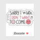 Make a bold statement with this witty “Sorry I’m late, I didn’t want to come” sticker, perfect for anyone who embraces honesty with a cheeky attitude. Featuring playful hand-lettered typography that mixes cursive flair with block letters, this design highlights the perfect blend of humor and unapologetic sass.