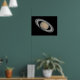 Vue de Saturne avec anneaux et aurores de pôle sud (lumières) présentes.