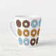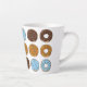 Illustration amusante et savoureuse de beignes sur une tasse de café. Parfait pour les gourmands.