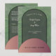 Célébrez votre mariage dans le style avec cette arche simple et des formes arrondies dans les tons naturels terreux comme le vert sauge et un or rose brillant avec un arrière - plan verdoyant. La faire-part de mariage est simple, élégante et de style boho chic moderne. Personnalisez-le avec vos détails, votre monogramme et votre programme pour une célébration vraiment remarquable.