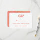 Invitation ami et famille pour assister à votre journée spéciale avec nos invitations de mariage modernes et simples. Les invitations de mariage minimalistes RSVP combinent calligraphie élégante avec un élégant saumon et des couleurs blanches. Personnalisez la carte de boîtier RSVP et laissez les invités indiquer leur préférence d'entrée à l'avance avec un champ personnalisé pour vos choix de repas. La carte se retourne à une couleur solide avec des lignes verticales dessinées à la main blanche. Invitation correspondante / carte de boîtier / accessoires disponibles sur le magasin. Toutes les couleurs disponibles, veuillez nous contacter pour demande personnalisée