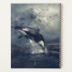 Majestueux orque sauvage, sautant au-dessus des eaux glacées d'un paysage enneigé.
