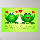 Affiche de 24" x 16", grenouilles caricaturales vertes Twitchy et Beulah aux coeurs rouges. Vous pouvez obtenir cette affiche dans des tailles plus grandes ou plus petites si vous le souhaitez, ou sur différents types de papier. Les zones humides comme les marécages, les tourbières, les marais et les tourbières sont vitales pour un environnement sain. Une partie du produit "Sauvez le marais !" est destinée à l'éducation environnementale et à la conservation des zones humides. Visitez le site http://www.happywishingwell.com/save-the-swamp.html pour plus d'informations, et passez une journée agitée !