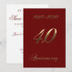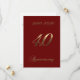 40e anniversaire de mariage, anniversaire ou jubilé, carte de sauvegarde de date Élégant aspect or Typographie d'écriture manuscrite avec fond rouge rubis et texte personnalisé au verso.