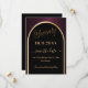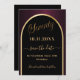 Une carte Save the Date pour une fête de 70e anniversaire. Un arrière - plan noir et bordeaux, décoré d'un faux arc doré. Personnalisez et ajoutez une date et votre nom. Le texte : Soixante-dix et Enregistrer la Date est écrit avec un grand script de style à la main tendance.