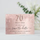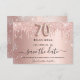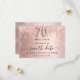Une femme Enregistrer la carte Date pour une fête de 70e anniversaire. arrière - plan rose à dégradé d'or décoré avec de l'or rose et des gouttes de parties scintillant faux argent. Personnalisez et ajoutez une date et un nom/texte. Le texte : Save the Date est écrit avec un grand script de style à la main tendance avec des swashes. Numéro 70 avec une police de style ballon.