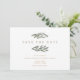 Elégant botanique enregistrer les cartes de date avec de beaux feuilles d'aquarelle. Customisez avec votre date de mariage, les noms, l'emplacement et les détails tels que le site Web mariage ou les informations d'invitation, le tout dans la typographie chic. Le dos des cartes continue la couleur douce et naturelle de l'avant.