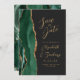 Save The Date Agate Emerald Green Gold Script Mariage foncé Enre