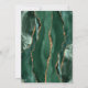 Le bord gauche de cette élégante carte moderne de sauvegarde de date de mariage présente une bordure d'agate aquarelle émeraude verte taillée avec de fausses paillettes d'or. Le texte personnalisable combine une écriture manuscrite grise charbon, des polices copperplate et italiques sur un fond blanc. Le verso présente un dessin d'agate vert et or assorti.