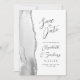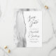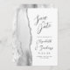 Le bord gauche de cet élégant mariage moderne, sauf la carte de date, comporte une bordure en aquarelle grise et blanche décorée d'une parties scintillant en faux argent. Le texte personnalisable combine écriture manuscrite grise au fusain, cuivre et polices italiques sur un arrière - plan blanc. L'envers est assorti d'un design d'agate gris, blanc et argent.