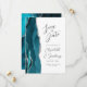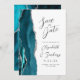 Le bord gauche de cet élégant mariage moderne, sauf la carte de date dispose d'une bordure d'aquarelle bleu turquoise, découpée avec une fausse parties scintillant argent. Le texte personnalisable combine écriture manuscrite grise au fusain, cuivre et polices italiques sur un arrière - plan blanc. L'envers présente un design turquoise et argenté assorti.