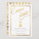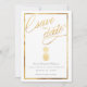 Tropical Pineapple Gold Wedding enregistrer les dates avec un front d'ananas doré et centre avec un motif frappant d'ananas sur le dos.