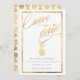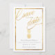 Tropical Pineapple Mariage Gold enregistrer notre nouvelle date avec un front et un centre d'ananas en or avec un motif frappant d'ananas sur le dos.