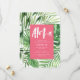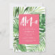 Invitations modernes de feuilles de palmier tropicale aquarelle feuillage d'aquarelle des fêtes. Texte du script d'effet peint à la main. Partie d'une collection d'été sur tendance. La couleur rose vif peut être changée.