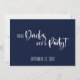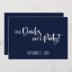 Bleu et blanc marine amusant Sauvez la carte Date avec des boissons gratuites et une fête! sur le devant et Oh, et Par la voie, nous nous marions! sur le dos. Personnalisez avec des noms dans le script et la ville, l'état et votre date spéciale de mariage pour vous assurer que les gens sont prêts à célébrer avec vous! Voir la coordination des articles dans notre boutique.