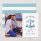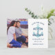 Cette invitation naútica pour sauver la date frappe une note côtière confiante avec un motif d'ancre bleu sarcelle et une carte de fond à rayures larges assorties, sur fond blanc avec une typographie navy audacieuse. Personnalisez avec votre photo de couple préférée, vos noms et la date du mariage. Parfait pour les mariages à la plage, au bord de l'eau ou de destination avec une riche palette de couleurs bleu sarcelle et navy.