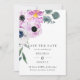 Un joli mariage sauve la date avec des anémones d'aquarelle violet et blanc. Personnalisez avec vos détails dans le charbon de bois et votre code QR pour votre site mariage.