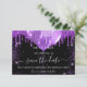 Une petite fille et tendance Enregistrer la carte Date pour une fête d'anniversaire de 18e (ou tout âge). Un arrière - plan noir décoré de percées de parties scintillant violette, de mousseux et de ballons. Personnalisez et ajoutez une date et un nom/âge. Le texte : Save the Date est écrit avec un grand script de style à la main tendance.