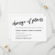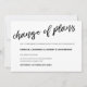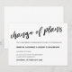 Carte élégante noire et blanche écrite à la main annonçant le report de la date de mariage avec un "Changement de plans" calligraphié.
